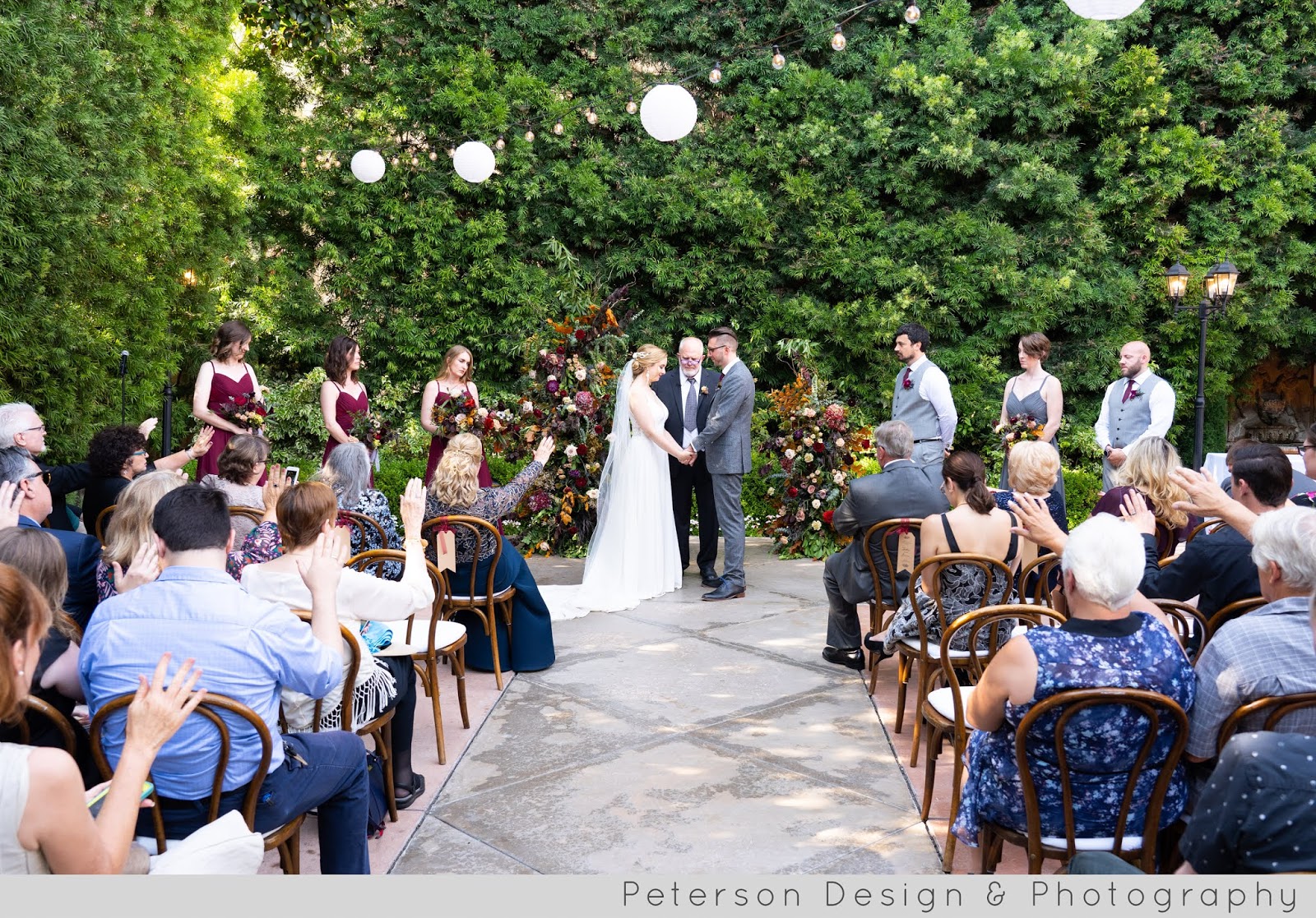 Jenn and Dan are dear friends of ours and we had the immense pleasure to document their wedding day! Lighting designers by trade, these two put so much thought into the design and aesthetic of their day modeling their theme after the dutch old masters paintings with rich colors, elegant textures, opulent florals and a romantic setting-- Franciscan Gardens in San Juan Capistrano. On the wedding day, everyone got ready in the large bride and groom suites on the property. After some detail shots, everyone got dressed, and we headed off to the Los Rios District for the first look. These two were so sweet and tender once the saw each other in their wedding best, they both teared up and got so excited to see one another! The day was finally here! Next, we had a blast spending some time exploring the Mission San Juan Capistrano with their awesome bridal party and the bride and groom. After portraits were complete we headed back to the venue for some detail photos and got ready for the ceremony to begin. The ceremony was filled with sweet moments, belly laughs, a reading on how love/marriage is like owning a dog, traditional vows and finally, a new Mr. and Mrs.! After family photos and a few more bride and groom portraits, the newlyweds joined the party and their beautiful reception. The party was full of joyful toasts, socializing, cake cutting, first dances and sweet details (note the lightbulb favors!). After some hilariously fun dancing, we sent the newlyweds off into the night with some epic smoke bombs We loved every moment of this wedding and it was such a delight to be a part of their day celebrating with so many people that we love!